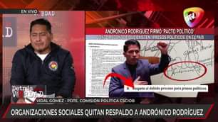 El presidente de la comisión política del CSCIOB, Vidal Gómez, asegura que en el país no hay presos políticos como lo reconoció el senador Andrónico Rodríguez en su pacto con políticos de Creemos y de CC, señala que lo que hay son detenidos preventivos corruptos.