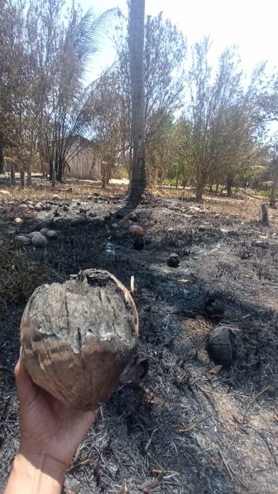 #ANF Así amaneció la comunidad de Buena Vista después del incendio que arrasó con cinco viviendas y un vehículo. Las plantaciones de coco y mango también fueron afectadas.