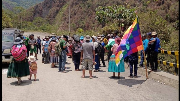 🔵 #ANF | #CuidadoDeLaCasaComun Bloqueo en la carretera a Apolo exige al Gobierno sacar maquinaria que explota oro en el rĂo Laji