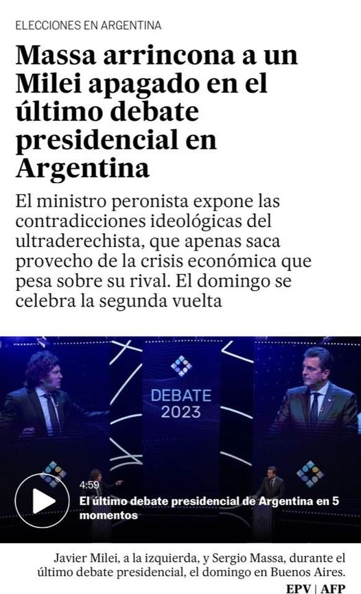 estado medicado para que no se saliera de control y se saliera de sus cabales. Y Milei controlado no es el Milei explosivo que les gusta a sus seguidores duros.El próximo domingo se define todo.