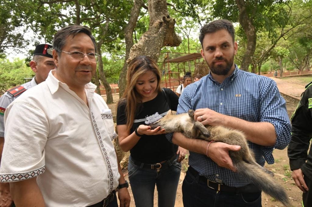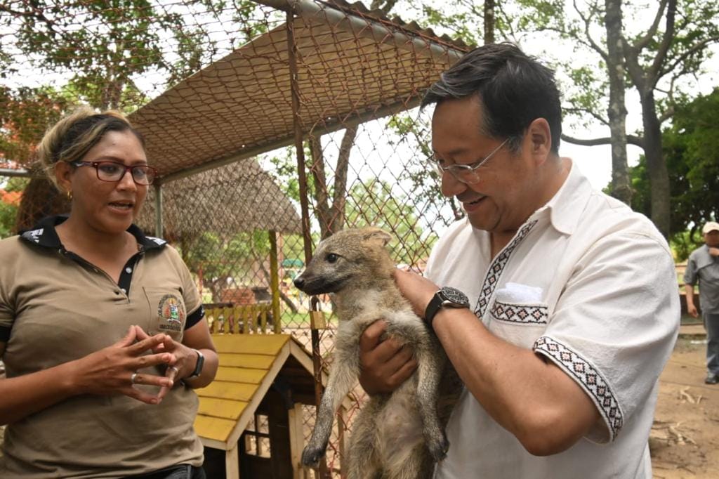 Presidente Luis Arce visita el refugio Pantanal en el municipio de Trinidad, donde se trasladaron a los animales afectados por los incendios.