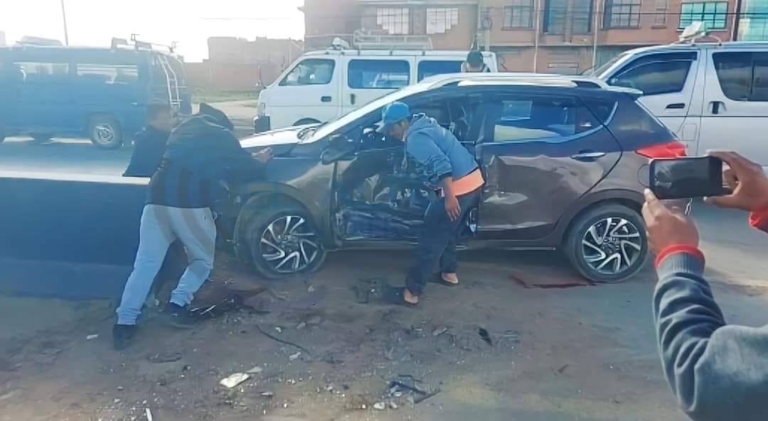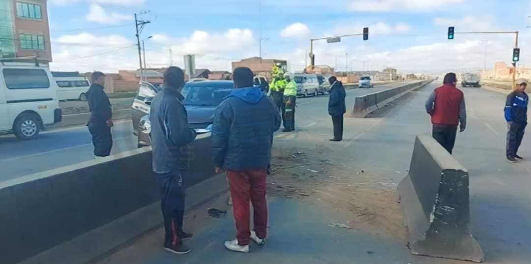 El hecho de tránsito se registró a primeras horas de este domingo a la altura de la Urbanización San Cipriano en Viacha, del hecho, cuatro personas resultaron heridas y fueron trasladadas hasta el hospital Corazón de Jesús, el impacto fue tan fuerte que hay serios daños materiales en los vehículos e incluso un bloque de cemento salio de la vía.