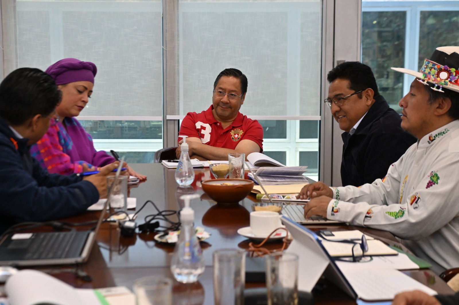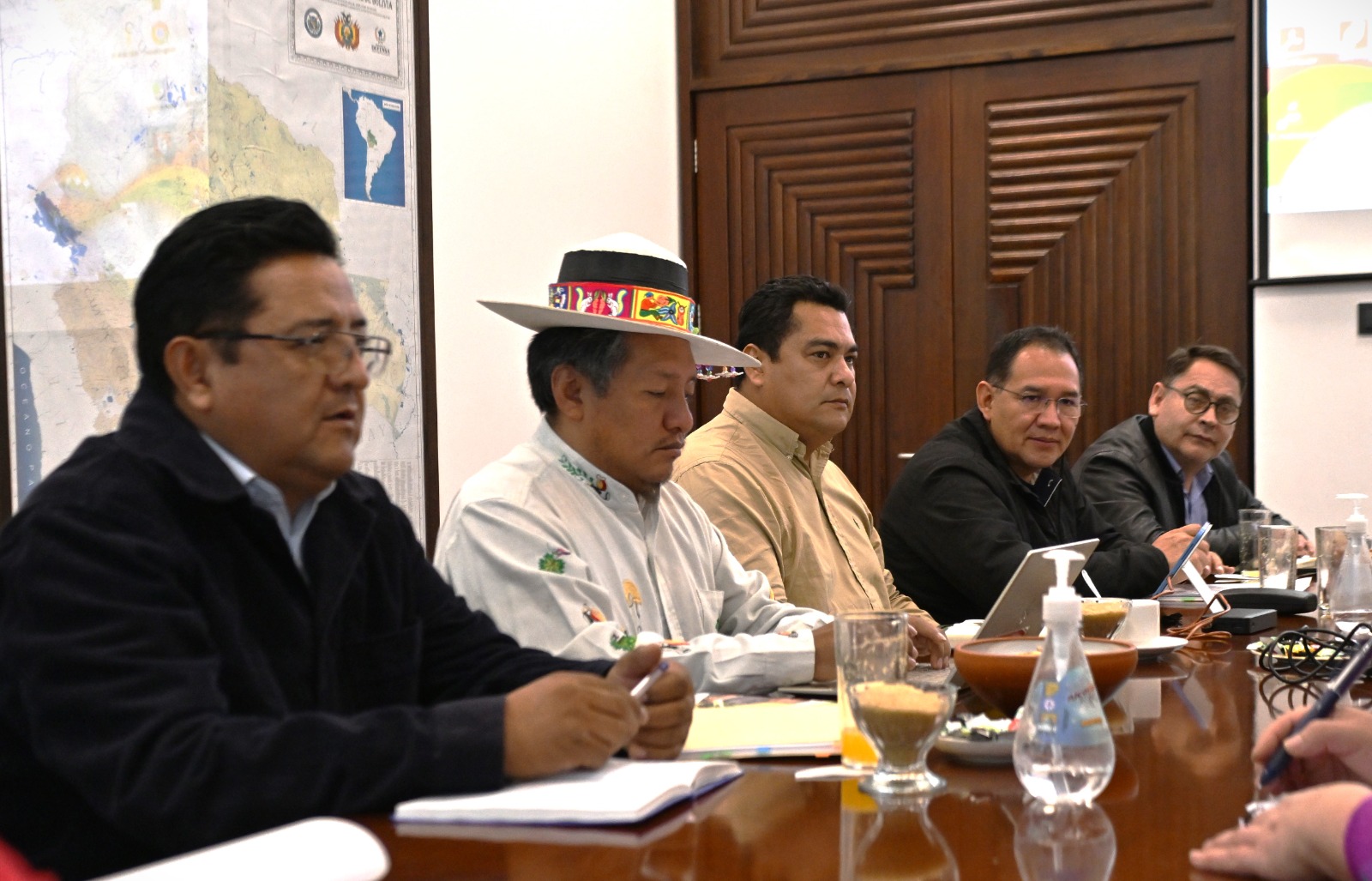 Cruz.Debido a lo delicado del tema de tierras y el último conflicto registrado en #SantaCruz, hoy nos reunimos de emergencia en el Gabinete de Tierras con las autoridades del sector, en Casa Grande del Pueblo. Coordinamos la implementación de políticas que den soluciones estructurales y definitivas a la situación. No vamos a tolerar ningún tipo de actividad que esté al margen de la ley, venga de donde venga.