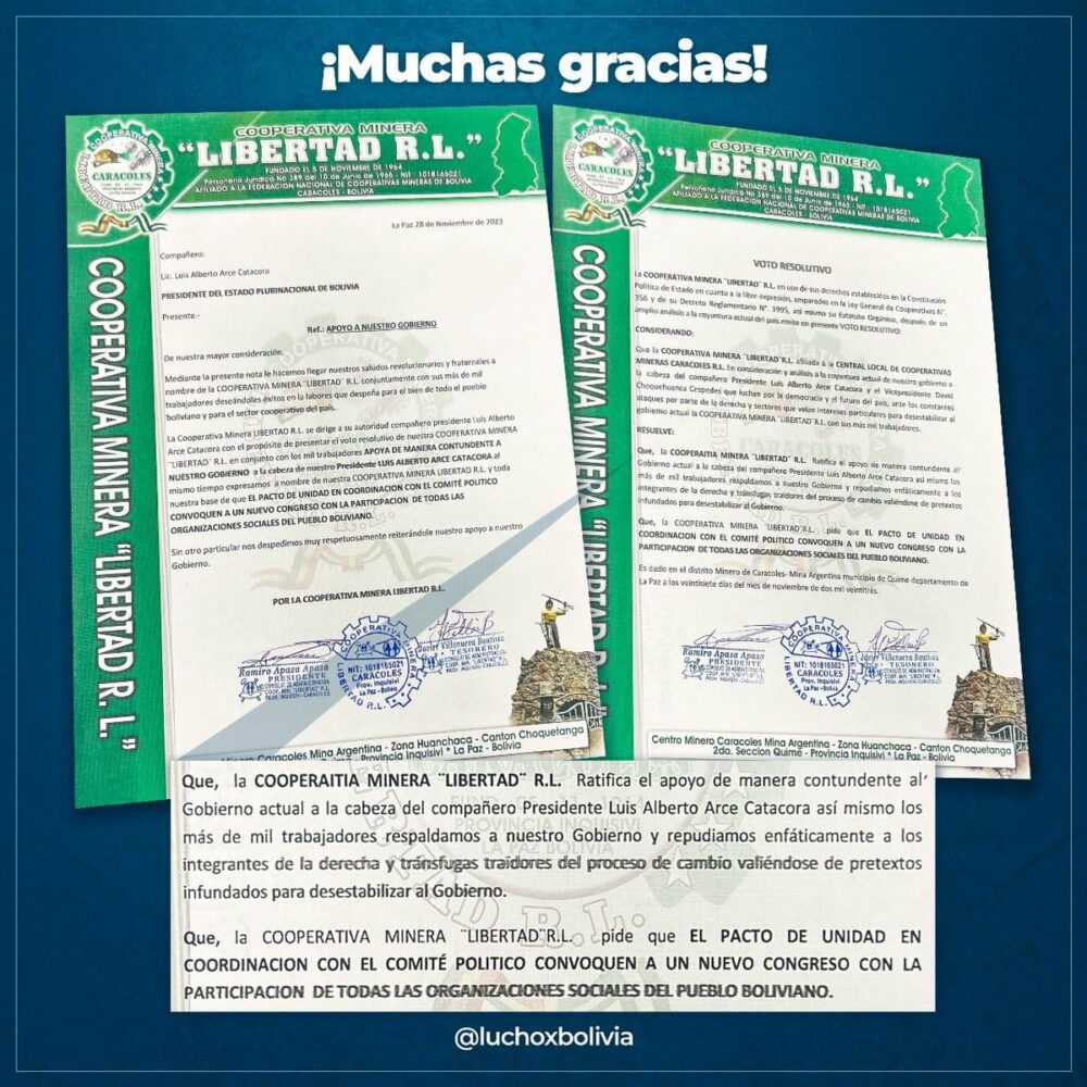 Agradecemos el permanente respaldo de nuestra cooperativa minera Libertad R.L. de la provincia Inquisivi de #LaPaz. https://t.co/0n9AcT0Dza