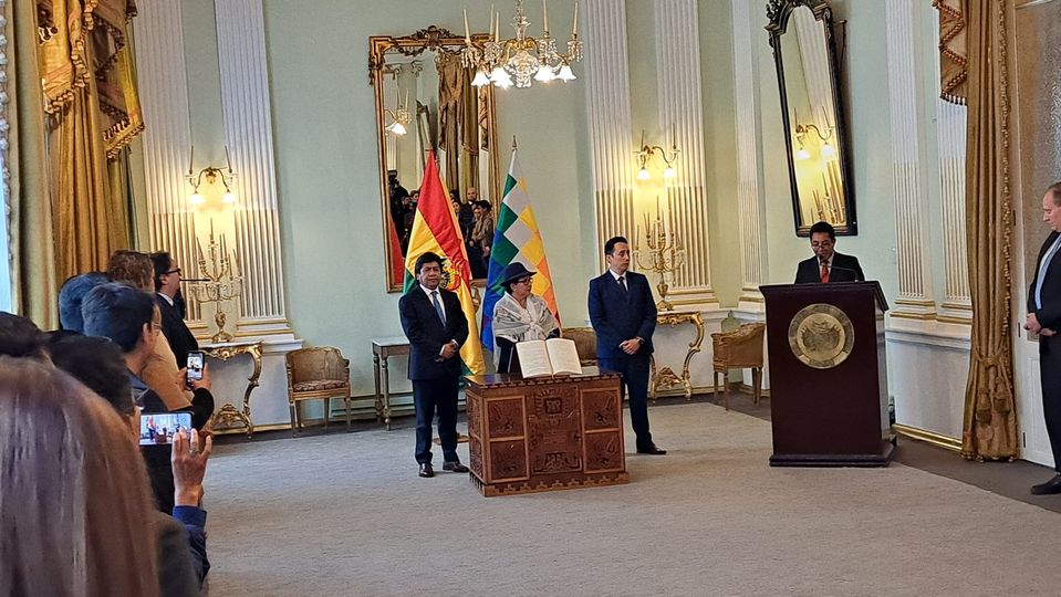La canciller Celinda Sosa posesiono a los viceministros Esteban Catarina Mamani como vicecanciller en reemplazo de Freddy Mamani y Fernando Raul Perez como viceministro de gestión consular en reemplazo de Eva Chuquimia
