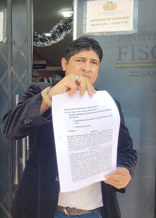 Rolando Cuellar diputado MAS presento una demanda penal ante el ministerio público en contra de la Juez Lilian Moreno Cuellar quien libero a la ex alcaldesa Angelica Sosa, pidió que se realice una intervención en el despacho de la juez y que sea aprehendida, así también pedirá ante el consejo de la magistratura iniciar un proceso administrativo para que sea suspendida.