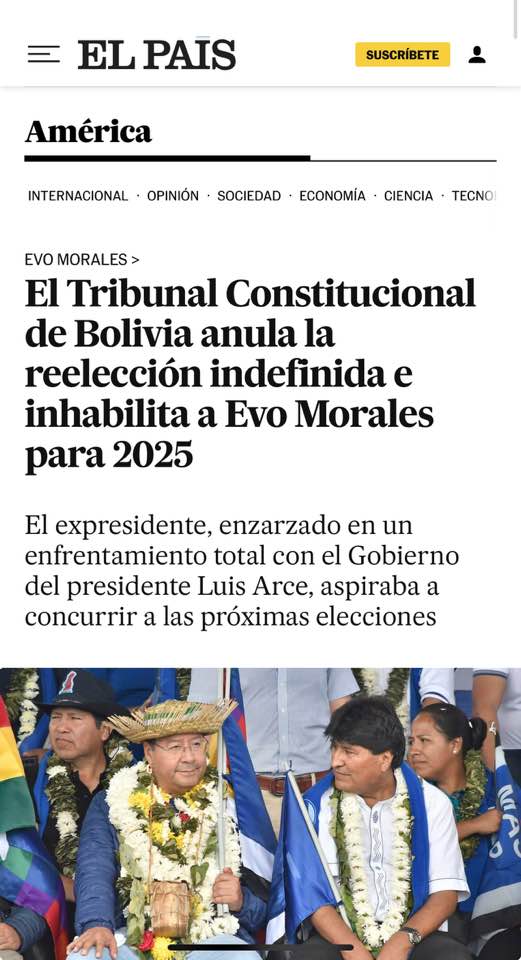 La bomba de fin de año. Evo inhabilitado. El TCP falló hoy 29 de diciembre. Así lo cuentan en España.