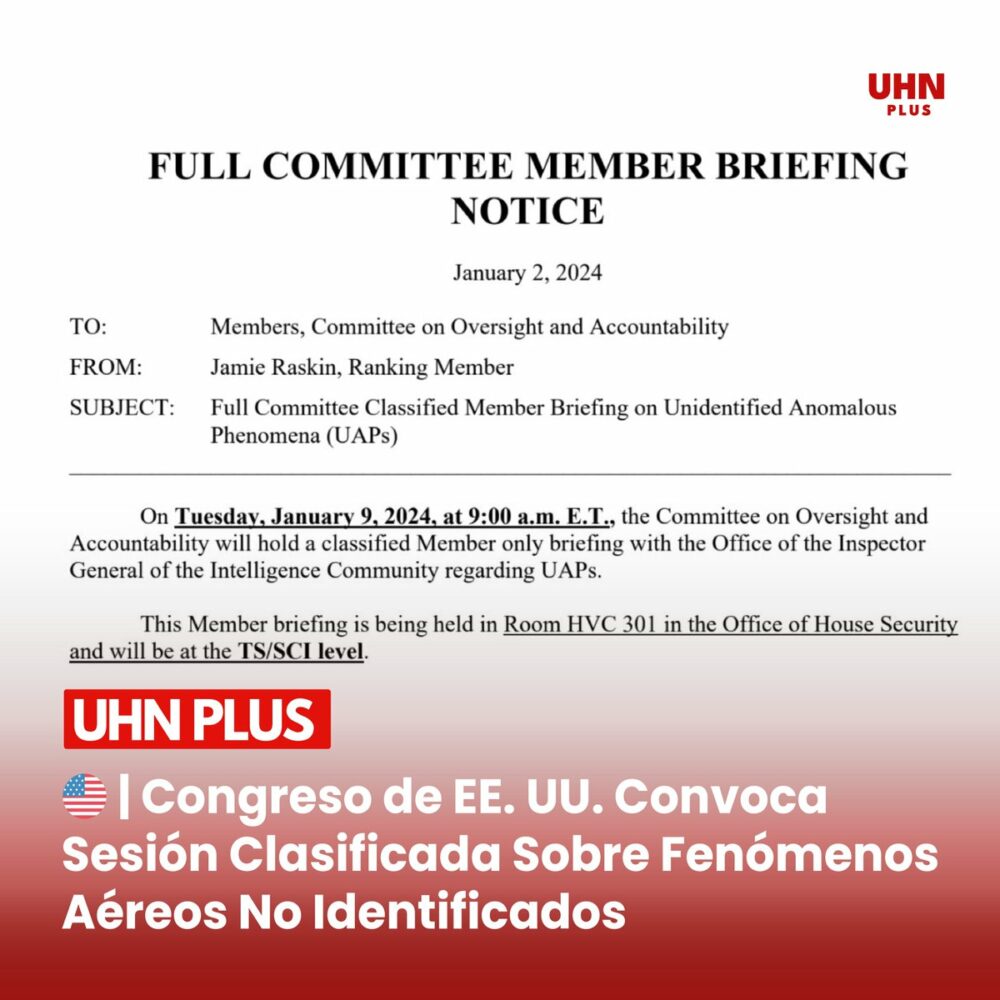 🇺🇸🛸 | ÚLTIMA HORA: El Congreso de EE. UU. tendrá una sesión clasificada sobre Fenómenos Aéreos No Identificados, el próximo martes 9 de enero, con la participación exclusiva de miembros del Comité de Supervisión y presentación de la Oficina del Inspector General de Inteligencia.… https://t.co/quleNDbp7G https://t.co/qlV7r7vyON