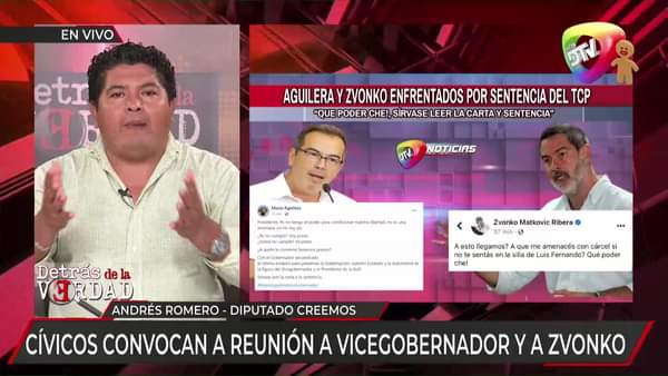 Sostiene que, ante el fallo del TCP, aparecen “oportunistas y tibios” que quieren aprovechar esta situación para asumir la gobernación cruceña, identificó a si a Fernando Larach quien como presidente de Comité cívico convocó a una reunión a Mario Aguilera y Zvonko Matkovic.