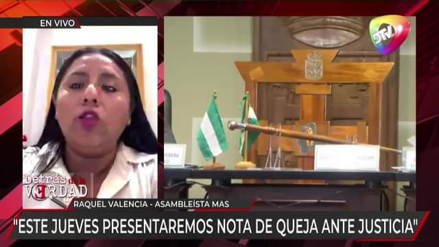 “Zvonko puede terminar preso, pediremos remitan obrados a la Fiscalía para que inicie proceso penal”, advierte la asambleista del MAS, Raquel Valencia, en relación a la crisis desatada en la Gobernación de Santa Cruz, tras el fallo del TCP.