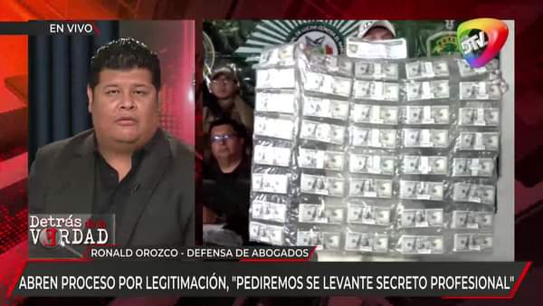 un millón de dólares, Ronald Orozco, aseguró que sus defendidos pasaron e ser investigados a ser testigos porque no existen argumentos que los vinculen con el hecho cuando ellos solo asumían la defensa legal de una persona que lo habría contactado, fueron “un chivo expiatorio”, según el abogado.Ante esto informa que los abogados en su declaración ya informaron de lo que habría sucedido por lo que la fiscalía determinó iniciar otro proceso investigativo.