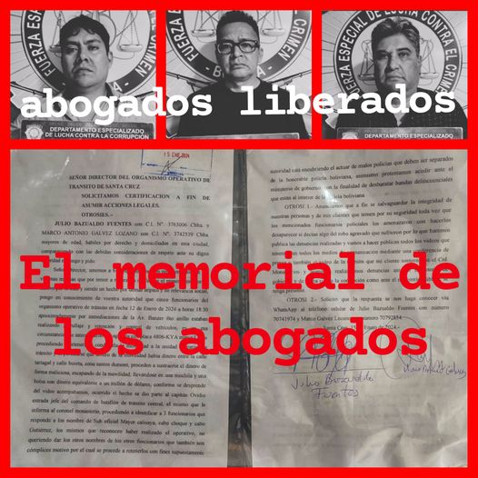 Según abogados tenían la misión 📝de conocer por qué razón le quitaron el dinero los PoliLadrones de Tránsito, lo dice el memorial que presentaron ante el director de Tránsito de Santa Cruz -adjunto-.