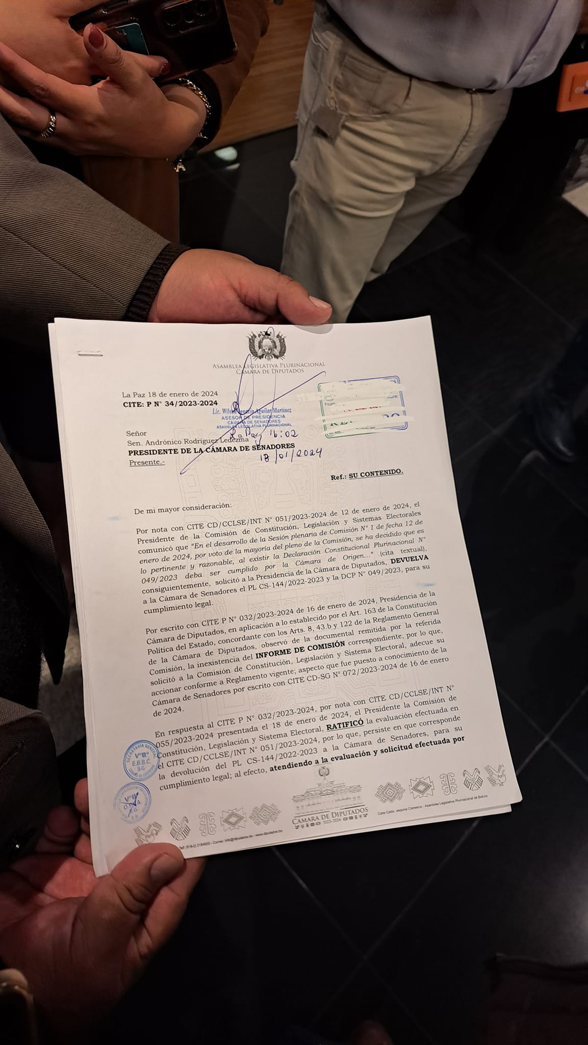 Con ayuda de un notario la cámara de diputados logró notificar a la presidencia del senado con la devolución del proyecto de ley 144 de preselección