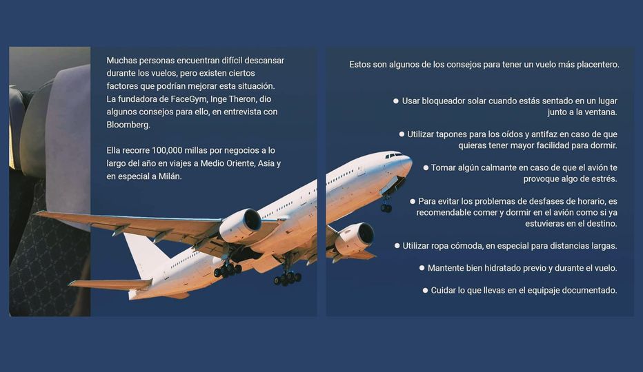7️⃣ CONSEJOS PARA DESCANSAR EN EL VUELO Hay ciertos consejos 📚 que podrían ayudarte cuando realices viajes en avión, tanto de seguridad como para poder descansar 💤. Son cerca de 7,000 millones de personas 🏃 las que suben a un avión 🧳 cada año con diferentes destinos.