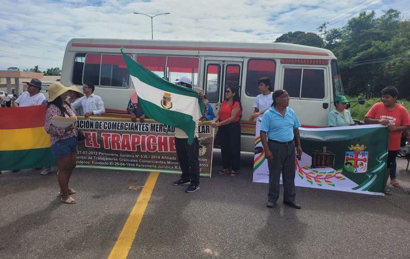 Vecinos barrio el Trapiche bloquean carretera a Cotoca, exigen pavimentación de Av.principal distrito municipal N.6