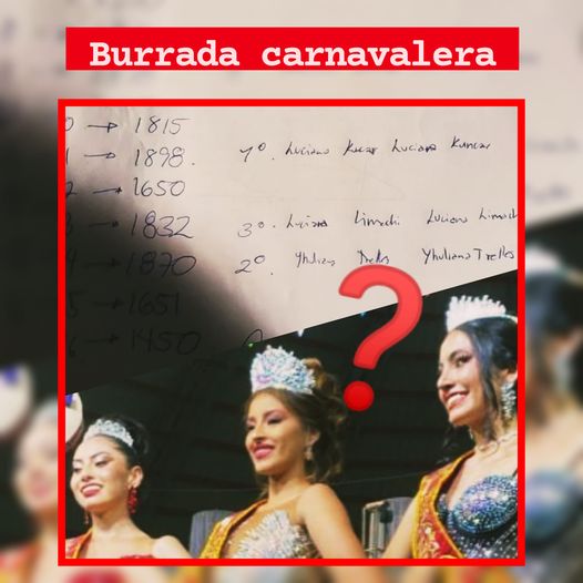 F: elPaísdeTarija Ahora los padres de familia de algunas candidatas denunciaron errores en la suma ➕➖ de puntos por parte de la notaría 🤦🏼. A la Alcaldía de Tarija no le quedó otra que sacar un comunicado 🪧 para aclarar el proceso de calificación, «la institución asegura que las candidatas son evaluadas por un jurado independiente, cuyas decisiones se basan en planillas validadas por una notaría de fe pública para garantizar la transparencia en los resultados», aclararon. De todas maneras han iniciado un proceso de revisión «exhaustiva» de los resultados 🧑🏼‍🏫 para validar o rectificar los mismos