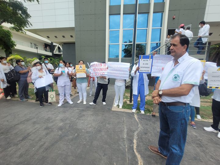 Personal de salud protesta en la secretaría de salud en la quinta municipal El presidente del Colegio Médico en Santa C…