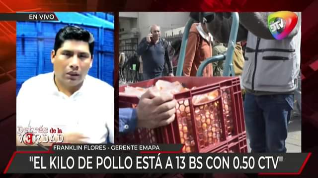 El gerente de EMAPA, Franklin Flores, informo que el gobierno trabaja para garantizar el abastecimiento de la carne de pollo para las ciudades de La