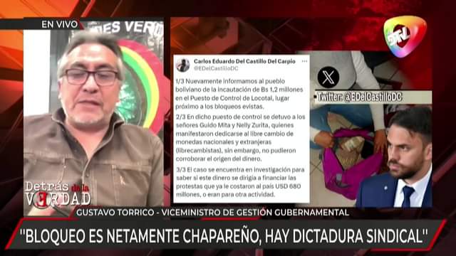 Esto luego de que el ministro de gobierno Eduardo del Castillo informó, en sus redes sociales, que este miércoles hubo una nueva incautación de dinero no justificado, ahora en Locotal, Cochabamba, uno de los puntos de bloqueo.