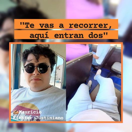 Me muevo para que suba el 2do pasajero e inmediatamente el chofer me reclama: «No aprietes mi pantalla, pues, joven; ¿qué voy a hacer sin radio después?» Yo, con la prepotencia de adolescente mocasinero que en pelea de gallos dice ¿»no sabes quién soy yo» o el tan conocido «no sabes quién es mi padre, voj»? Le respondo: «Pero maestro, usted me dijo recorra puej, entonces no recorro y voy solito aquí». Me responde: «No pues, joven, recórrete; aquí entran dos» (todo con Maroyu de fondo a todo volumen). Le digo: «Que yo sepa, aquí solo debe ir un pasajero…»