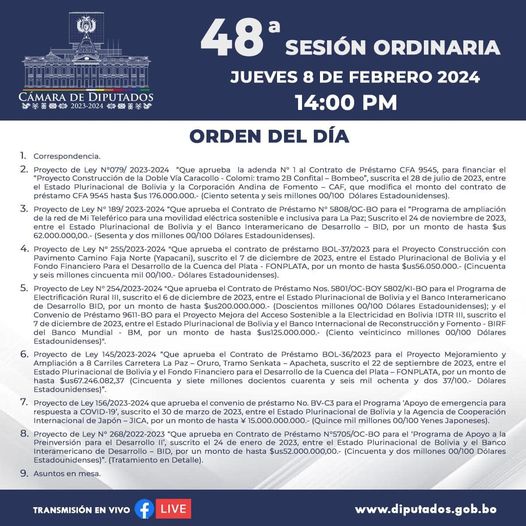 Diputados convoca a sesión este jueves para aprobar 7 contratos de créditos internacionales