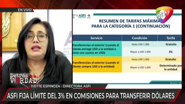 Así mismo, se refirió a la exceso del 10% de comisiones que se estaría cobrando para la transferencia de dólares, indico que se estableció poner un límite fijando el 3% en comisiones.