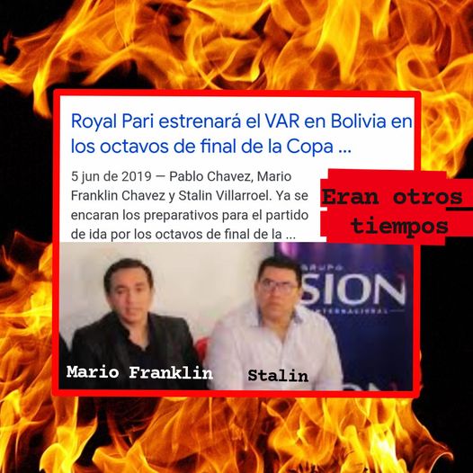 EN LOS TIEMPOS DE DIOS ANDABAN JUNTITOS 🤷No sorprendía verlos juntos, eran hermanos en Cristo, cuñados y futboleros. En la imagen que se adjunta se ve a Mario Franklin Chávez -de terno- y Stalin Villarroel -de camisa- en una de las últimas apariciones públicas que tuvieron. No solo te hablaban de salvación, no solo te vendían un lote con discursos interminables sino que además, juntos; contaban su pasión por Royal Pari ⚽ El millonario Mario Franklin era el que ponía los dólares 💰 y Stalin el que le seguía la línea. En momento de la vida rompieron ⚡, ya nada los sostenía, ni siquiera el hecho de que la hermana de Mario Franklin estaba casada con Stalin. Mientras Stalin Villarroel fue detenido ⛓️ por un proceso seguido por Mario Franklin Chávez, el empresario millonario que está en Perú. DE HERMANOS EN CRISTO A ENEMIGOS EN LA VIDA