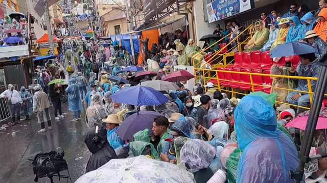 Una llovizna paralizó la entrada del carnaval de Oruro, las danzas ya no ingresan pero el público se mantiene en las graderías con ponchillos.