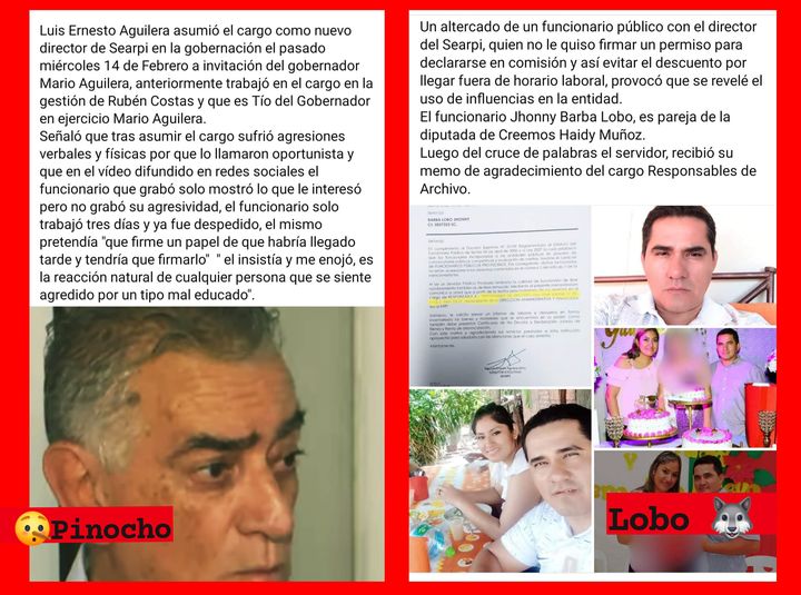 ❤️🔥Desde la Omar Chávez cuentan que Jhonny Barba Lobo tenía la pega por su esposa diputada y desde Creemos aseguran que Luis Aguilera volvió al cargo porque es sobrino de Mario Gobernador.