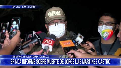 Gustavo Astilla Director de la FELCC Santa Cruz, brinda informe sobre muerte de Jorge Luis Martínez Castro quién disparo a empresario cruceño