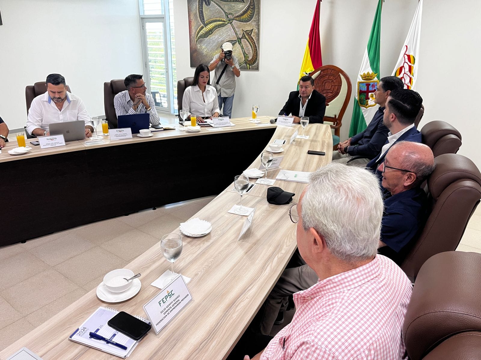 El Alcalde de la ciudad de Santa Cruz Jhonny Fernández se reúne con el sector empresarial en la quitan municipal,