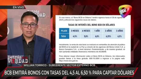 El Subgerente del Sector Externo del Banco Central de Bolivia, William Torrico, informó que en dos días de venta del “Bono BCB en Dólares” se ha vendido
