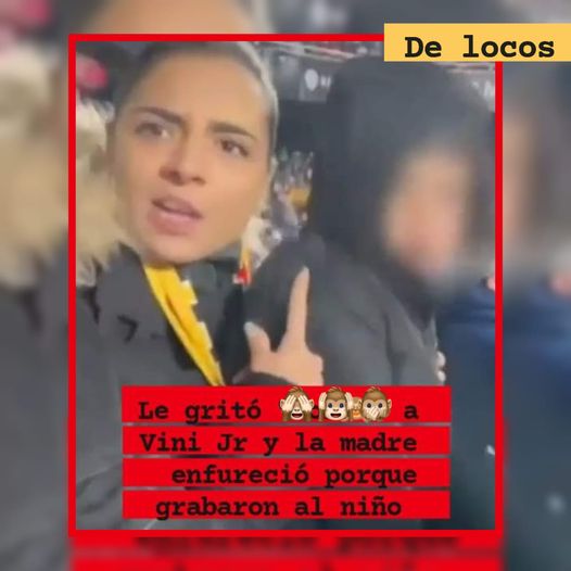 “🙈🙉🙊” durante o jogo entre Real Madrid e Valencia, nesse sábado», posteó 🤳 en X Goleada Euro La hincha brasilera que grabó 📲 el asqueroso momento no solo quedó impactada sino que además fue agredida por el enojo de la madre que no le gustó que grabará a su hijo 🤔 El mundo al revés 🙃. 👤 «‘Me senti ameaçada e com medo».Torcedora registra atos racistas contra Vinicius Jr. em Valência e revela choro à ESPN», relataron los medios 🇧🇷. Seguí aquí 🔻 el vídeo y el testimonio de la hincha