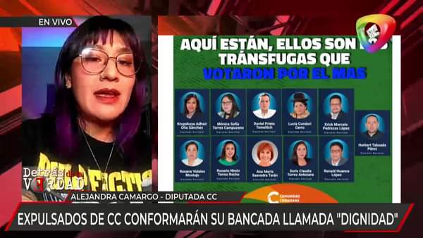 funcionales al MAS, según la diputada Krupskaya Oña CC firmó un acuerdo con el MAS para aprobar los proyectos de leyes de créditos, señala que ellos ya sabían de estas normas y las aceptaron al firmar el acuerdo. Así mismo, la diputada Alejandra Camargo dijo que con el objetivo de ser una verdadera oposición en el país se conformó la bancada denominada “dignidad” porque considera que CC no está cumpliendo su rol más al contrario estaría siendo funcional al MAS.