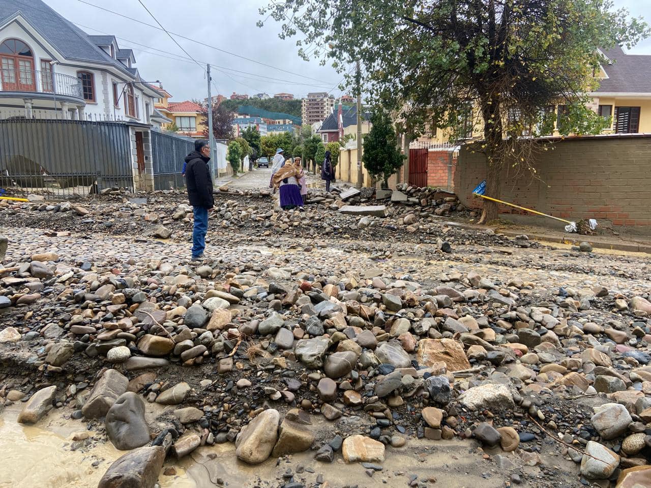 vecinos de La Paz expresan su malestar porque consideran que existe una desatención y falta de gestión del alcalde Iván Arias para ejecutar medidas de prevención para evitar el desborde de los ríos.La riada provocó, a la altura de la calle 43 de Achumani, que el muro del río se desplome y las aguas salgan a la avenida. Producto de este rebalse, en Huayllani y Achumani varias viviendas sufrieron inundaciones.