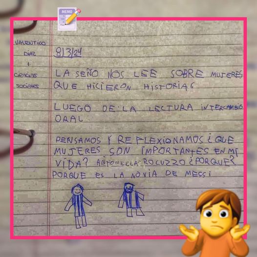 y su respuesta se hizo viral 😂 En el marco del Día Internacional de la Mujer, una joven mostró la tarea 📝 que le mandaron a hacer a su sobrino en el colegio, donde la consigna era nombrar a las mujeres más importantes para él y la respuesta que tuvo se volvió viral 🤳@rocioortizx, la chica compartió la imagen de la hoja y escribió: “Miren lo que contestó, jajaja”.