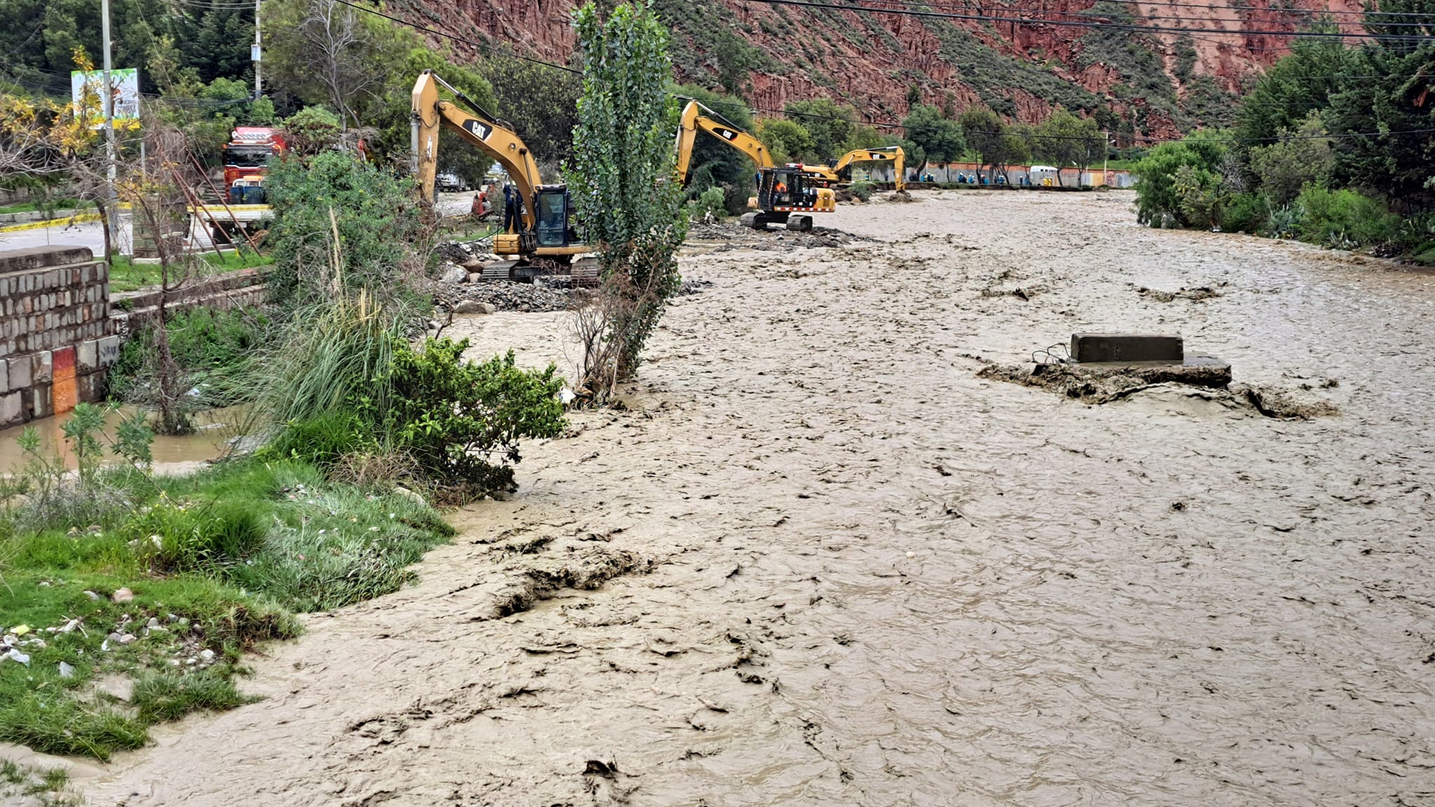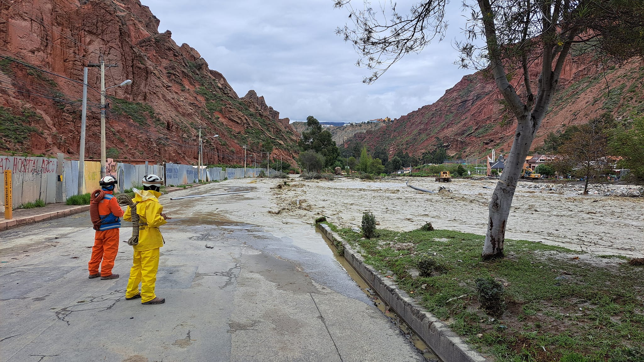 El alcalde Ivan Arias informó que debido a la crecida del río se desbordó las aguas hacia la vía principal de acceso a Mallasa en la zona sur,