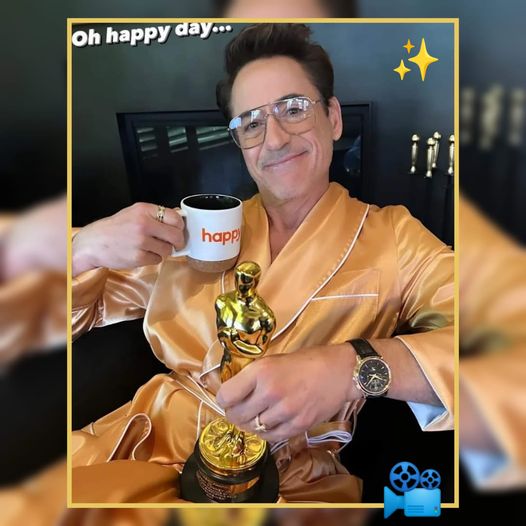 CELEBRA COMO QUIERE 💁🏽 Hace 24 ⌚, Robert Downey Jr. ganaba su primer ✨Oscar a Mejor Actor de Reparto, por su labor en la película🎥 «Oppenheimer». 🎭El actor, para celebrar, decidió publicar esta fotografía en sus redes sociales, tomándose una tacita de café ☕ en una mano y agarrando su estatuilla en la otra. ✍🏽»Oh feliz día», fue el mensaje que acompañó la fotografía y que recibió una «lluvia» de «Me gusta», por parte de sus millones de seguidores🤳🏽