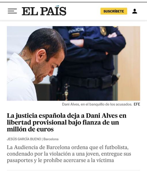 Con dinero todo es más fácil. Dani Alves logra su libertad en España. Pagó una fianza de un millón de dólares. Está condenado por violar a una joven en una discoteca española. Pasó catorce meses tras las rejas.