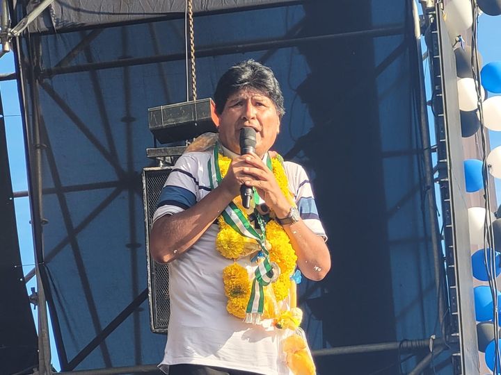 Evo Morales Pdte de la dirección nacional del MAS pidió unidad, fuerza y compromiso en los 29 años de aniversario del MAS IPSP a la cabeza del movimiento indígena , sin embargo denunció la presencia del helicóptero que sobrevolaba en el estadio Integración Bolivia del municipio de Yapacaní, salieron de un gobierno defacto aún gobierno nefasto con el objetivo de amedrentar con el helicóptero dando vueltas por el estadio.