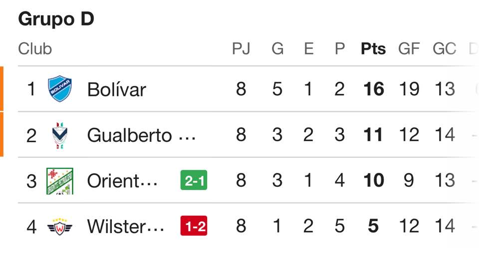 Oriente eliminado. Hoy quedó fuera de competencia, pese a ganar en la última fecha de la p
