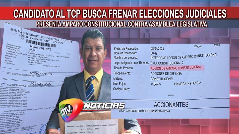 Charles Mejía que fue inhabilitado como candidato al TCP por el departamento de Beni decidió presentar un amparo contitucional contra la Comisión de Justicia Plural y Constitución de la Asamblea Legislativa Plurinacional demandando la violación a sus derechos constitucionales, como medida cautelar Mejía pide a la justicia frenar el proceso de preselección judicial.