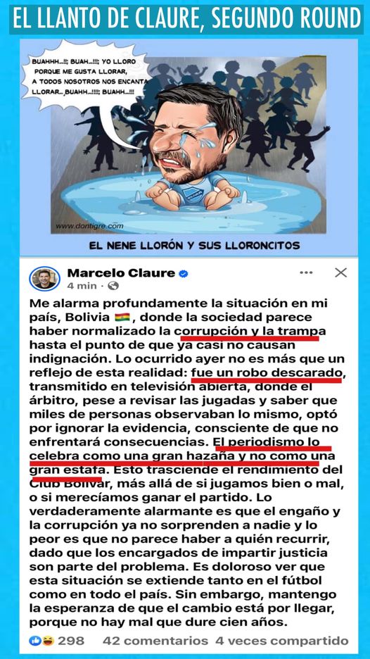 Me solidarizo con Claure pero llorar no puedo. Eso sí, le ofrezco un pañuelo.