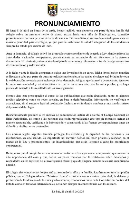 Investigan presunto abuso sexual en colegio Aleman – La Paz