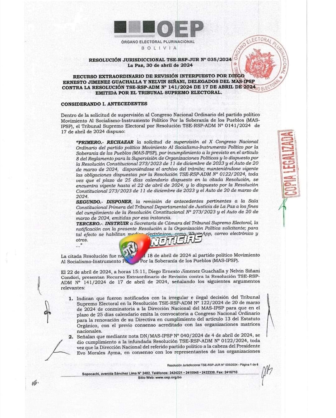 TSE declara improcedente solicitud de recurso extraordinario de «evistas» y ratifica rechazo a congreso del MAS en Villa Tunari