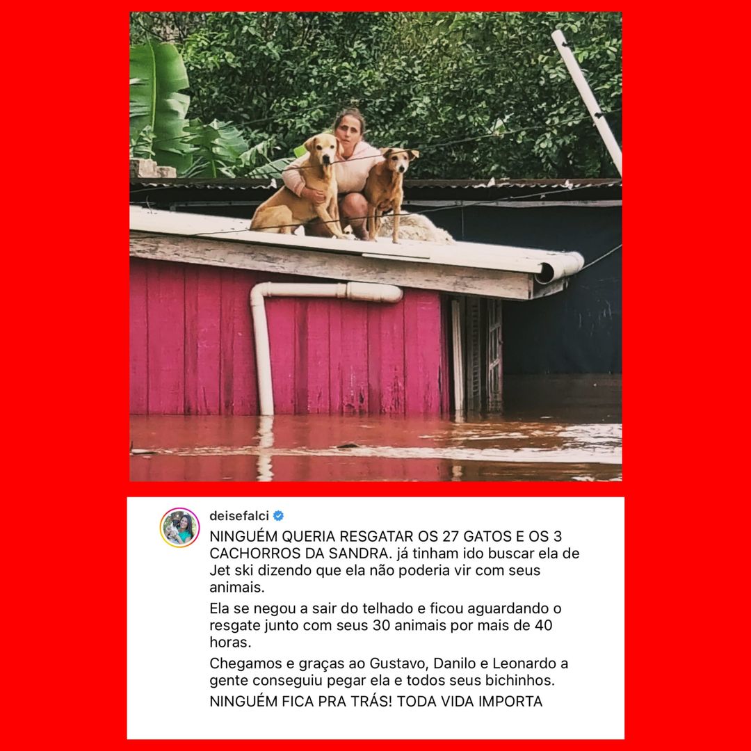 HUMANIDAD Y TRAGEDIA 🔹Se hace viral la imagen de una mujer que decidió quedarse 40 horas sobre el techo de su casa ya que se negó a ser rescatada en Rio Grande do Sul sin sus 3 perros y 27 gatos. 🔹Dicha zona de Brasil vive las peores inundaciones de su historia.