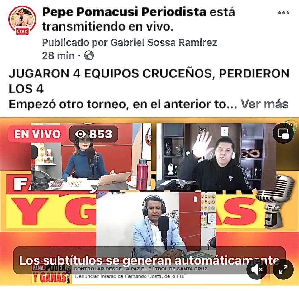 Comenzando una nueva semana de trabajo. Empezamos en la mañana con Fama, Poder y Ganas. Hablando del fútbol y la política cruceños, que viven (ambos)luchando contra el descenso más que buscando títulos.