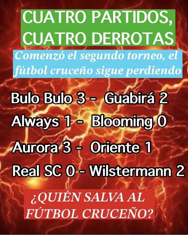 Comenzó un nuevo torneo. Los cuatro equipos cruceños que jugaron este fin de semana perdieron. Otra vez.