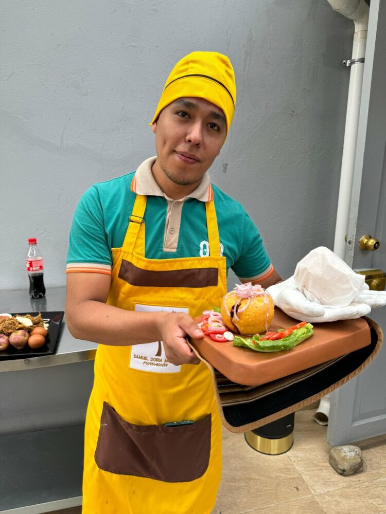 Aldo muestra las papas rellenas que preparó para los jurados del Emprende Ideas. https://t.co/94zKhHbxrR