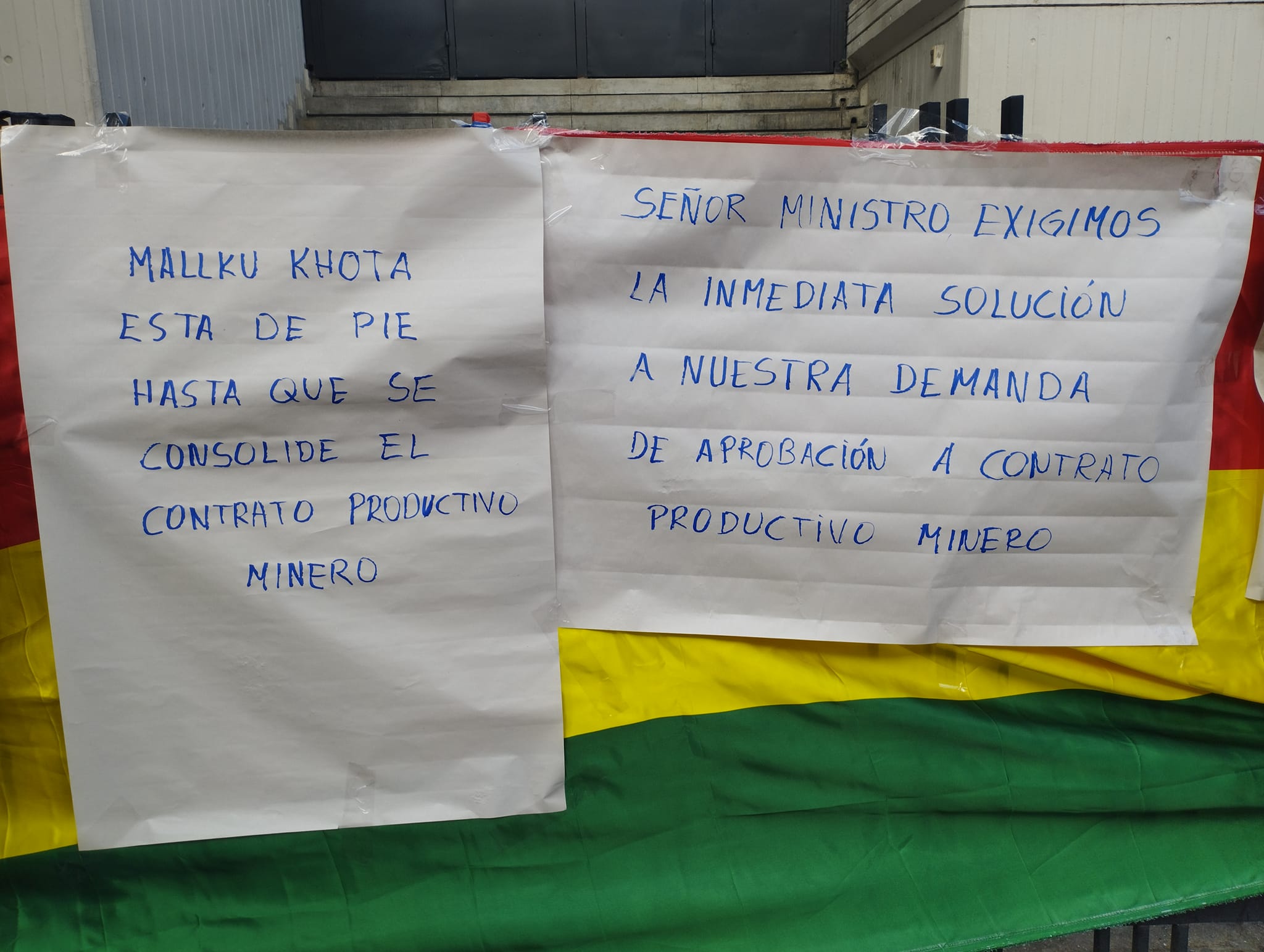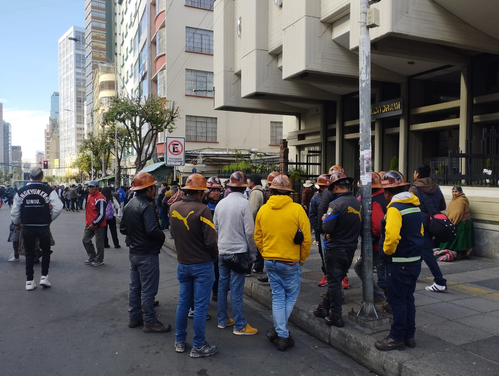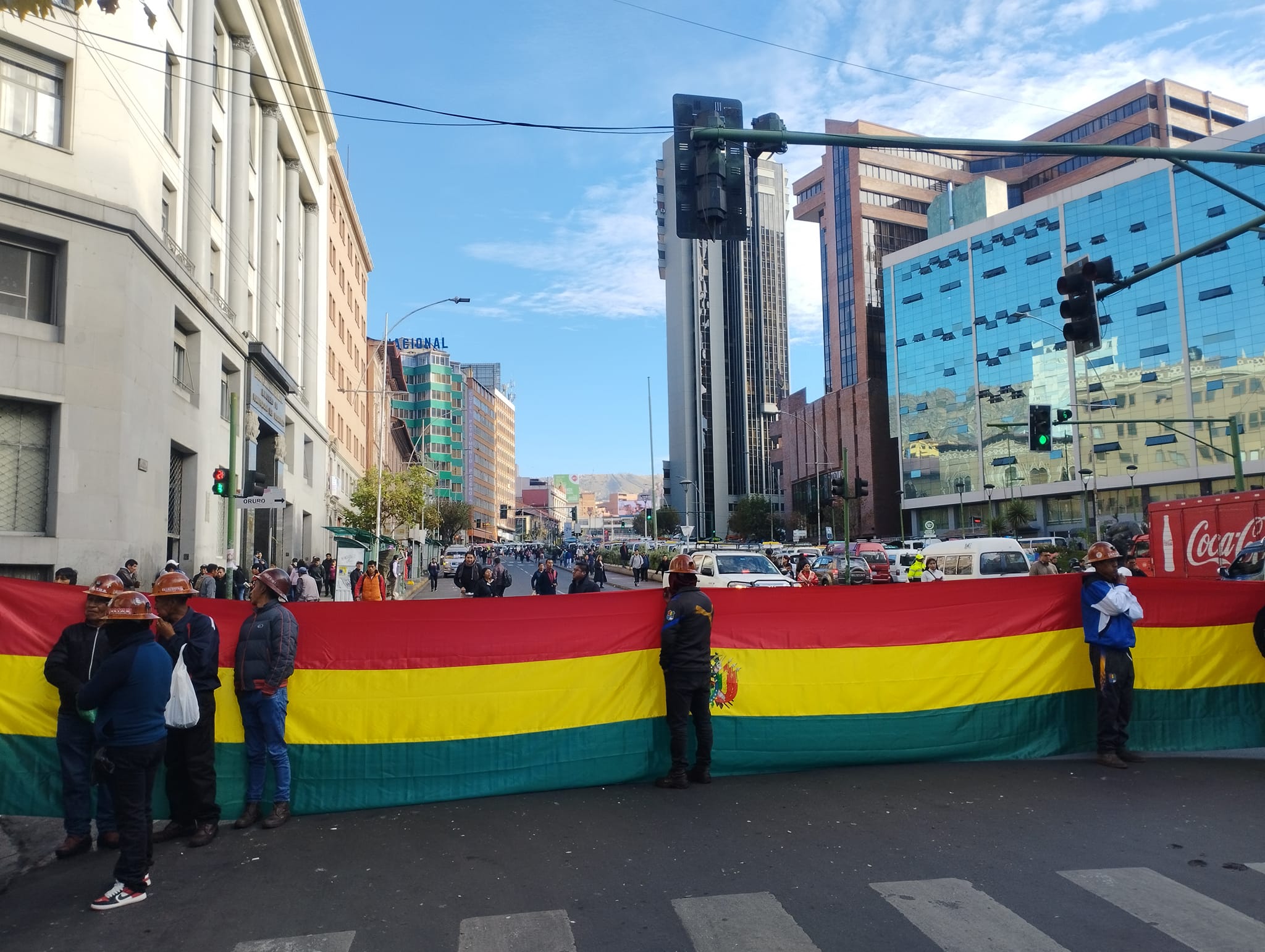 Desde primeras horas de la mañana de este martes, mineros del sindicato mixto de trabajadores de Mallku Khota, del departamento de Potosí, cómo medida de protesta cerraron un carril de la avenida centrica Mariscal Santa Cruz. Exigen que el Ministerio de Minería apruebe contratos productivos para el sector. En estos momentos ingresaron a reunirse con el ministro de esa cartera. El congestionamiento vehícular se agravó en la Sede de Gobierno.